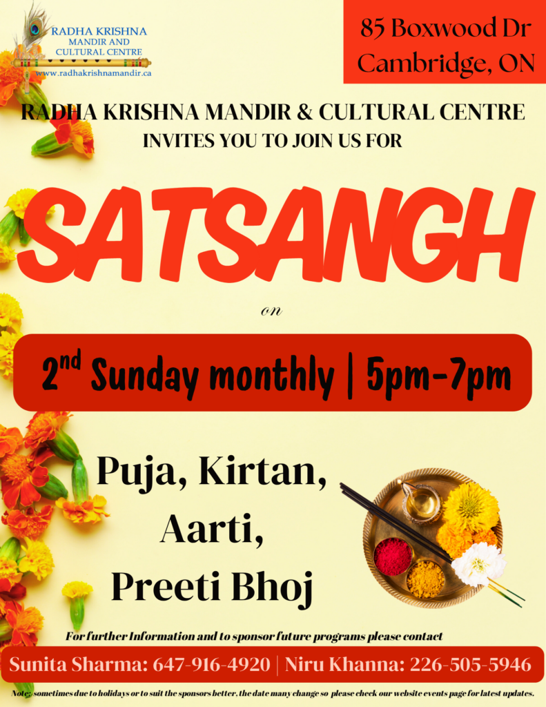 The prayer hall at our Mandir extends a warm welcome to devotees every day, allowing you to visit at your convenience typically between 8 am to 12 pm and 5 pm to 8 pm. Discover additional programming and special events times highlighted in the calendar (or flyer) below, enriching your spiritual experience with us. As part of our commitment to maintaining a spiritually uplifting environment, we kindly request devotees and visitors to be mindful of our dress code policy when visiting our Mandir. Additionally, at all our events, we observe a vegetarian/vegan diet and refrain from alcohol consumption. Your cooperation in preserving the sanctity of our sacred space is sincerely appreciated.