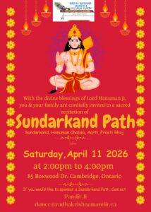 The prayer hall at our Mandir extends a warm welcome to devotees every day, allowing you to visit at your convenience typically between 8 am to 12 pm and 5 pm to 8 pm. Discover additional programming and special events times highlighted in the calendar (or flyer) below, enriching your spiritual experience with us. As part of our commitment to maintaining a spiritually uplifting environment, we kindly request devotees and visitors to be mindful of our dress code policy when visiting our Mandir. Additionally, at all our events, we observe a vegetarian/vegan diet and refrain from alcohol consumption. Your cooperation in preserving the sanctity of our sacred space is sincerely appreciated.